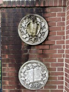 Walter Sondheim Jr. lived in Bolton Place at no. 201, and the freestanding house at the back of the rows was the home of Gerald Johnson, a writer who had previously lived at 1310 Bolton Street. According Frank Shivers, he was who had these decorative elements installed at the entrance to his new Bolton Hill house: