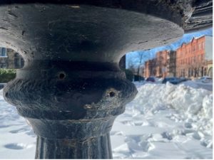 Mischief ensued. A Nov. 4, 1889, Sun article reported, “Complaint was made at the mayor’s office by one of the commissioners of Park Place that boys had thrown the flower vases from their pedestals in that square. The matter was referred to Marshal Frey.” Over the years this wasn’t unheard of. A September 1945 Sun article about vandalism in Baltimore cemeteries also mentioned, “Ornamental iron vases in the Park avenue squares … have been overturned repeatedly.”