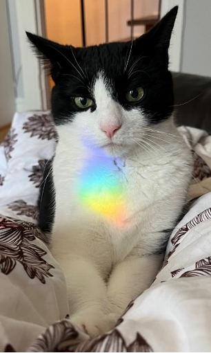 Helios loves catching rainbows from a window overlooking John St. Park.